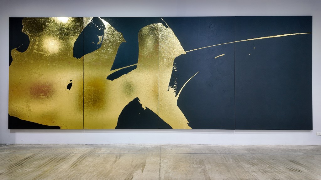 ผลงานแอบสแตรกชิ้นนี้แสดงให้เห็นถึงความงดงามอันเป็นนามอธรรมของการปะทะกันระหว่างแสงและเงาในรูปแบบที่ลึกซึ้ง ศิลปินได้สร้างสรรค์ภาพทองคำเปลวที่ทอประกายบนผืนผ้าใบสีดำ เพื่อสื่อถึงแนวคิดเรื่องการมีสติ และการตระหนักรู้ถึงตัวตน