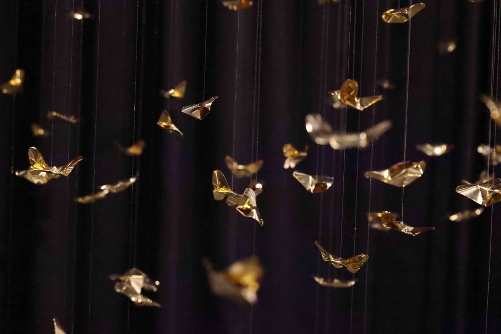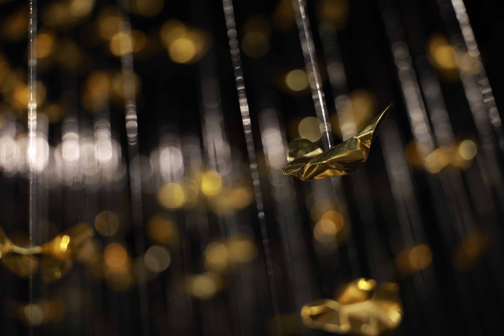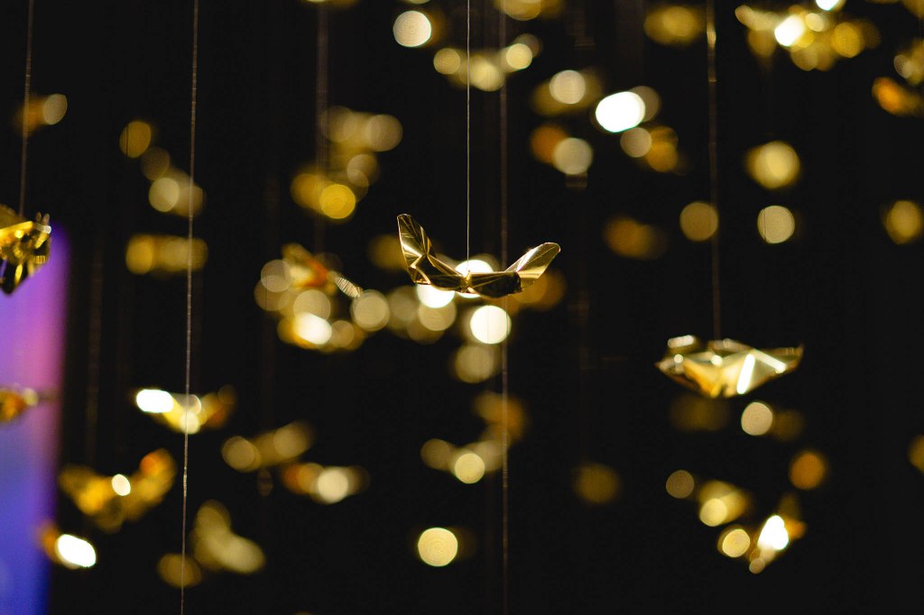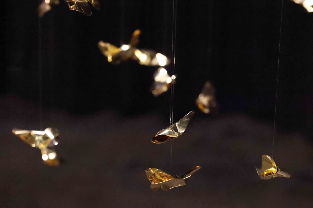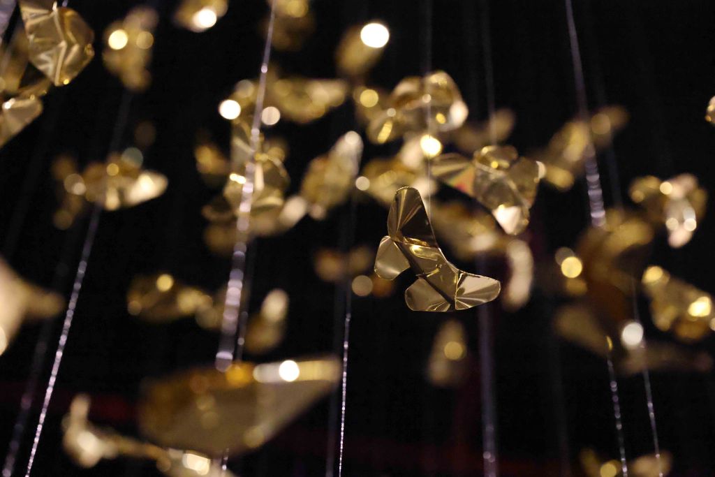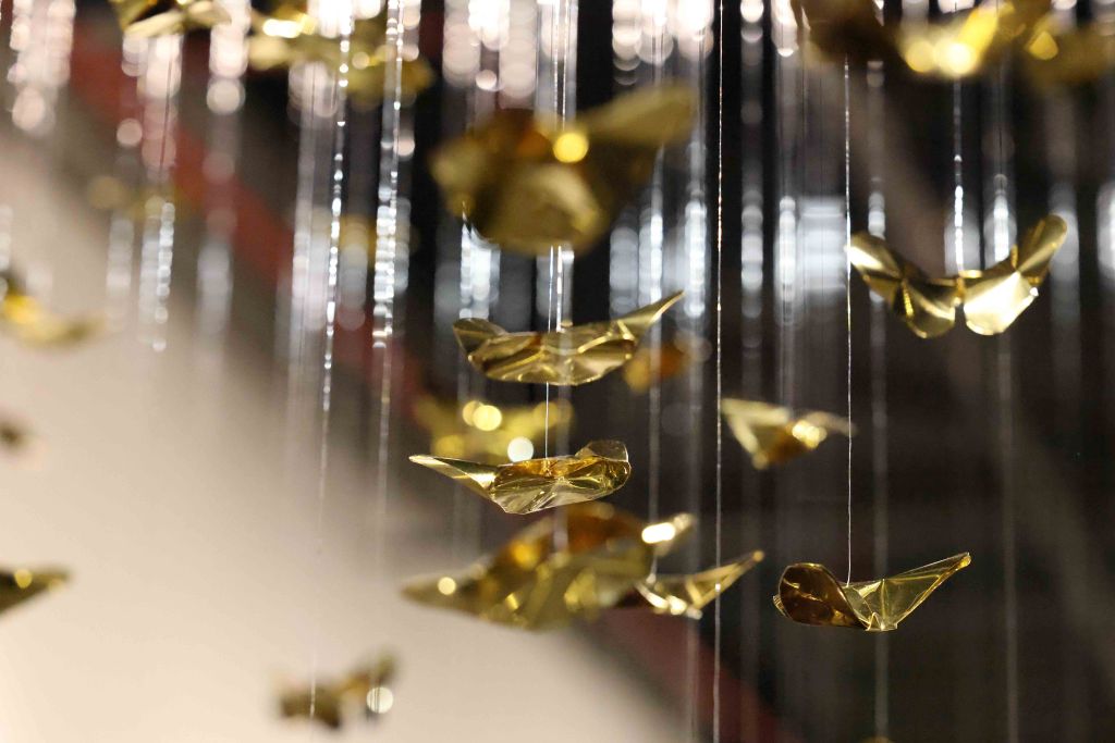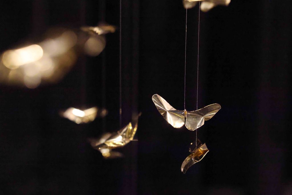 “Golden Metamorphosis” is a suspended installation sculpture that explores the process of healing and the reintegration of fragmented souls back into a state of “Oneness.” This artwork questions the concepts of fragmentation and rebirth as fundamental conditions of human existence, utilizing an artistic language that merges hand-folded brass sheets with the philosophy and profound wisdom of the Lanna culture.