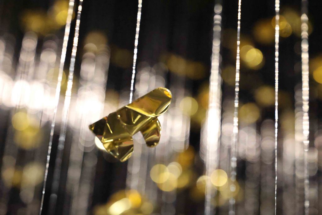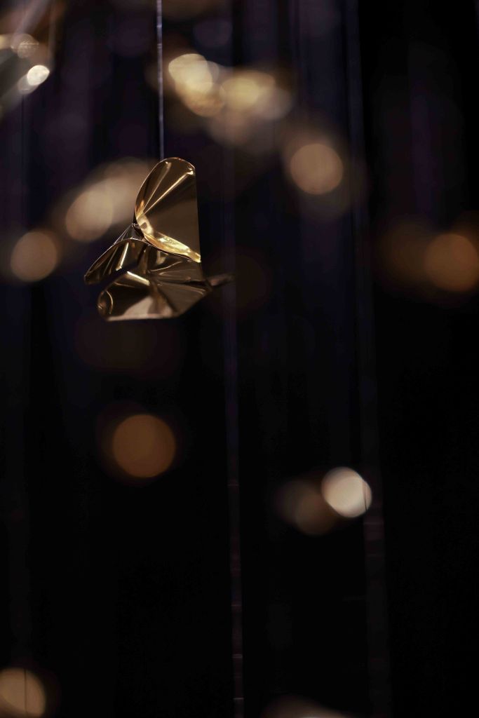 Suspended Sculpture (Folded brass sheet, Nylon wire, Light)