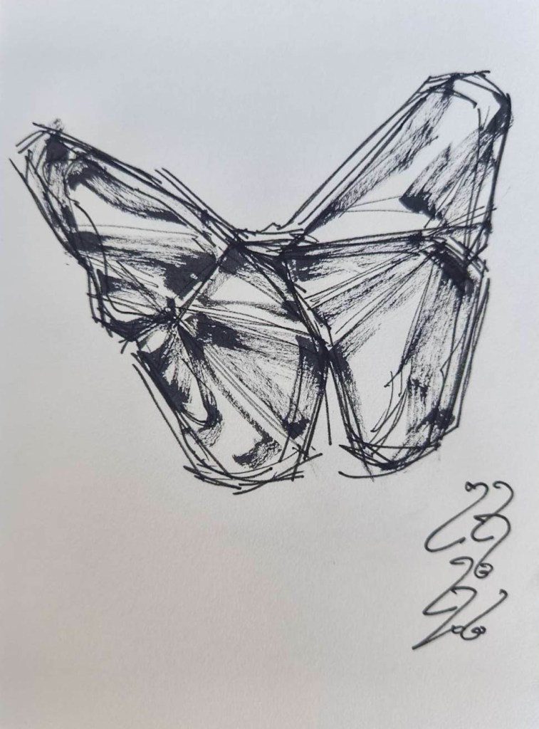 The “butterfly” is chosen as the central symbol of the artwork. In the beliefs of the Tai ethnic groups, butterflies represent the lingering traces of spirits or ancestral souls. The artist employs this symbol as a metaphor for transition and a dual rebirth from a caterpillar bound to the earth and the limitations of the material world, through its dissolution in the chrysalis, to its emergence as a butterfly soaring into the sky. The butterfly thus acts as a bridge between the earth and the heavens, much like the shimmering light on the water’s surface that simultaneously reflects the celestial heights above and the profound depths below.